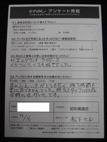 お車のご相談・ 査定だけでもOK! カンタン 入力 30秒 アップルがブランド買取始めました! お電話でも受付中! 受付時間10:00 ~ 19:00 052-363-7811 お車のご相談・ 査定だけでもOK! カンタン 入力 30秒 アップルがブランド買取始めました! お電話でも受付中! 受付時間10:00 ~ 19:00 052-363-7811 アップルがブランド買取始めました! お電話でも受付中! 受付時間10:00 ~ 19:00 052-363-7811 店舗情報 在庫車 スタッフ紹介 ブログ お客様の声 キャンペーン 無料査定 click お客様の声 ご記入日: 2017/07/16 エルグランドライダーS匿名希望様 店のふんいきがとても良く、待ち時間も苦になりませんでした。担当スタッフの対応が特に良かったです。 前へ 次へ お客様の声一覧を見る