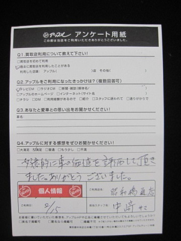 お車のご相談・ 査定だけでもOK! カンタン 入力 30秒 アップルがブランド買取始めました! お電話でも受付中! 受付時間10:00 ~ 19:00 052-363-7811 お車のご相談・ 査定だけでもOK! カンタン 入力 30秒 アップルがブランド買取始めました! お電話でも受付中! 受付時間10:00 ~ 19:00 052-363-7811 アップルがブランド買取始めました! お電話でも受付中! 受付時間10:00 ~ 19:00 052-363-7811 店舗情報 在庫車 スタッフ紹介 ブログ お客様の声 キャンペーン 無料査定 click お客様の声 ご記入日: 2018/02/15 匿名希望様 好意的に車の価値を評価して頂きました。ありがとうございました。 前へ 次へ お客様の声一覧を見る