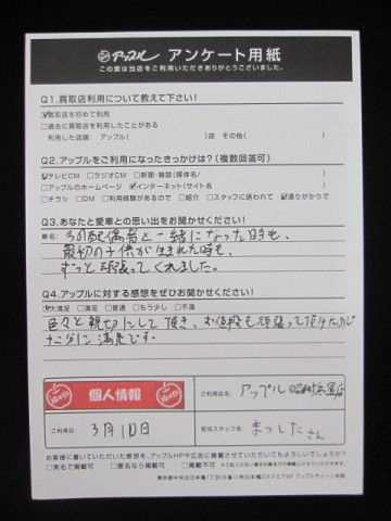 お車のご相談・ 査定だけでもOK! カンタン 入力 30秒 アップルがブランド買取始めました! お電話でも受付中! 受付時間10:00 ~ 19:00 052-363-7811 お車のご相談・ 査定だけでもOK! カンタン 入力 30秒 アップルがブランド買取始めました! お電話でも受付中! 受付時間10:00 ~ 19:00 052-363-7811 アップルがブランド買取始めました! お電話でも受付中! 受付時間10:00 ~ 19:00 052-363-7811 店舗情報 在庫車 スタッフ紹介 ブログ お客様の声 キャンペーン 無料査定 click お客様の声 ご記入日: 2018/03/10 匿名希望様 色々と親切にして頂き、お値段も頑張って頂けたので十二分に満足です。 前へ 次へ お客様の声一覧を見る