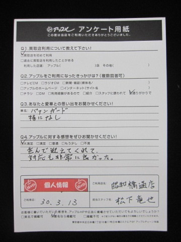 お車のご相談・ 査定だけでもOK! カンタン 入力 30秒 アップルがブランド買取始めました! お電話でも受付中! 受付時間10:00 ~ 19:00 052-363-7811 お車のご相談・ 査定だけでもOK! カンタン 入力 30秒 アップルがブランド買取始めました! お電話でも受付中! 受付時間10:00 ~ 19:00 052-363-7811 アップルがブランド買取始めました! お電話でも受付中! 受付時間10:00 ~ 19:00 052-363-7811 店舗情報 在庫車 スタッフ紹介 ブログ お客様の声 キャンペーン 無料査定 click お客様の声 ご記入日: 2018/03/13 ヴァンガード匿名希望様 並んで迎えてくれて、対応も非常に良かった。 前へ 次へ お客様の声一覧を見る