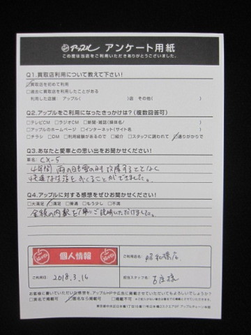 お車のご相談・ 査定だけでもOK! カンタン 入力 30秒 アップルがブランド買取始めました! お電話でも受付中! 受付時間10:00 ~ 19:00 052-363-7811 お車のご相談・ 査定だけでもOK! カンタン 入力 30秒 アップルがブランド買取始めました! お電話でも受付中! 受付時間10:00 ~ 19:00 052-363-7811 アップルがブランド買取始めました! お電話でも受付中! 受付時間10:00 ~ 19:00 052-363-7811 店舗情報 在庫車 スタッフ紹介 ブログ お客様の声 キャンペーン 無料査定 click お客様の声 ご記入日: 2018/03/16 CX-5匿名希望様 金額の内訳を丁寧にご説明いただけました。 前へ 次へ お客様の声一覧を見る