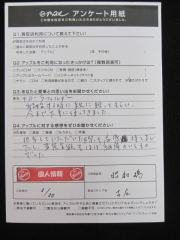 お車のご相談・ 査定だけでもOK! カンタン 入力 30秒 アップルがブランド買取始めました! お電話でも受付中! 受付時間10:00 ~ 19:00 052-363-7811 お車のご相談・ 査定だけでもOK! カンタン 入力 30秒 アップルがブランド買取始めました! お電話でも受付中! 受付時間10:00 ~ 19:00 052-363-7811 アップルがブランド買取始めました! お電話でも受付中! 受付時間10:00 ~ 19:00 052-363-7811 店舗情報 在庫車 スタッフ紹介 ブログ お客様の声 キャンペーン 無料査定 click お客様の声 ご記入日: 2018/03/30 カローラフィールダー匿名希望様 担当していただいた際も好感持てましたし、査定金額もほぼ納得のいくものでした。 前へ 次へ お客様の声一覧を見る