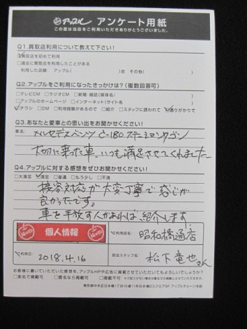 お車のご相談・ 査定だけでもOK! カンタン 入力 30秒 アップルがブランド買取始めました! お電話でも受付中! 受付時間10:00 ~ 19:00 052-363-7811 お車のご相談・ 査定だけでもOK! カンタン 入力 30秒 アップルがブランド買取始めました! お電話でも受付中! 受付時間10:00 ~ 19:00 052-363-7811 アップルがブランド買取始めました! お電話でも受付中! 受付時間10:00 ~ 19:00 052-363-7811 店舗情報 在庫車 スタッフ紹介 ブログ お客様の声 キャンペーン 無料査定 click お客様の声 ご記入日: 2018/04/16 ベンツC180ステーションワゴン匿名希望様 接客対応が大変丁寧で感じが良かったです。車を手放す人がいれば紹介します。 前へ 次へ お客様の声一覧を見る