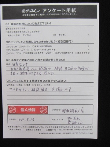 お車のご相談・ 査定だけでもOK! カンタン 入力 30秒 アップルがブランド買取始めました! お電話でも受付中! 受付時間10:00 ~ 19:00 052-363-7811 お車のご相談・ 査定だけでもOK! カンタン 入力 30秒 アップルがブランド買取始めました! お電話でも受付中! 受付時間10:00 ~ 19:00 052-363-7811 アップルがブランド買取始めました! お電話でも受付中! 受付時間10:00 ~ 19:00 052-363-7811 店舗情報 在庫車 スタッフ紹介 ブログ お客様の声 キャンペーン 無料査定 click お客様の声 ご記入日: 2018/05/13 セレナ匿名希望様 ていねいに相談頂き大満足です。 前へ 次へ お客様の声一覧を見る