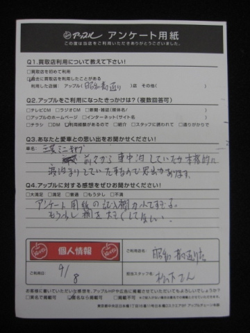 お車のご相談・ 査定だけでもOK! カンタン 入力 30秒 アップルがブランド買取始めました! お電話でも受付中! 受付時間10:00 ~ 19:00 052-363-7811 お車のご相談・ 査定だけでもOK! カンタン 入力 30秒 アップルがブランド買取始めました! お電話でも受付中! 受付時間10:00 ~ 19:00 052-363-7811 アップルがブランド買取始めました! お電話でも受付中! 受付時間10:00 ~ 19:00 052-363-7811 店舗情報 在庫車 スタッフ紹介 ブログ お客様の声 キャンペーン 無料査定 click お客様の声 ご記入日: 2018/09/08 ミニキャブ匿名希望様 アンケート用紙の記入欄が小さすぎる。もう少し欄を大きくしてほしい。 前へ 次へ お客様の声一覧を見る
