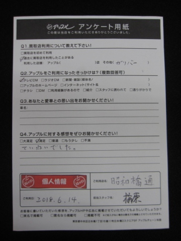 お車のご相談・ 査定だけでもOK! カンタン 入力 30秒 アップルがブランド買取始めました! お電話でも受付中! 受付時間10:00 ~ 19:00 052-363-7811 お車のご相談・ 査定だけでもOK! カンタン 入力 30秒 アップルがブランド買取始めました! お電話でも受付中! 受付時間10:00 ~ 19:00 052-363-7811 アップルがブランド買取始めました! お電話でも受付中! 受付時間10:00 ~ 19:00 052-363-7811 店舗情報 在庫車 スタッフ紹介 ブログ お客様の声 キャンペーン 無料査定 click お客様の声 ご記入日: 2018/06/14 匿名希望様 ていねいでした。 前へ 次へ お客様の声一覧を見る