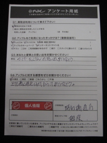 お車のご相談・ 査定だけでもOK! カンタン 入力 30秒 アップルがブランド買取始めました! お電話でも受付中! 受付時間10:00 ~ 19:00 052-363-7811 お車のご相談・ 査定だけでもOK! カンタン 入力 30秒 アップルがブランド買取始めました! お電話でも受付中! 受付時間10:00 ~ 19:00 052-363-7811 アップルがブランド買取始めました! お電話でも受付中! 受付時間10:00 ~ 19:00 052-363-7811 店舗情報 在庫車 スタッフ紹介 ブログ お客様の声 キャンペーン 無料査定 click お客様の声 ご記入日: 2018/10/01 匿名希望様 とても高く値を付けてもらってありがとう。 前へ 次へ お客様の声一覧を見る