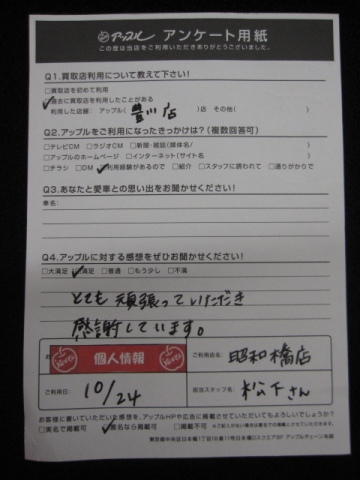 お車のご相談・ 査定だけでもOK! カンタン 入力 30秒 アップルがブランド買取始めました! お電話でも受付中! 受付時間10:00 ~ 19:00 052-363-7811 お車のご相談・ 査定だけでもOK! カンタン 入力 30秒 アップルがブランド買取始めました! お電話でも受付中! 受付時間10:00 ~ 19:00 052-363-7811 アップルがブランド買取始めました! お電話でも受付中! 受付時間10:00 ~ 19:00 052-363-7811 店舗情報 在庫車 スタッフ紹介 ブログ お客様の声 キャンペーン 無料査定 click お客様の声 ご記入日: 2018/10/24 匿名希望様 とても頑張っていただき感謝しています。 前へ 次へ お客様の声一覧を見る