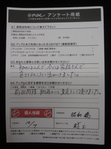 お車のご相談・ 査定だけでもOK! カンタン 入力 30秒 アップルがブランド買取始めました! お電話でも受付中! 受付時間10:00 ~ 19:00 052-363-7811 お車のご相談・ 査定だけでもOK! カンタン 入力 30秒 アップルがブランド買取始めました! お電話でも受付中! 受付時間10:00 ~ 19:00 052-363-7811 アップルがブランド買取始めました! お電話でも受付中! 受付時間10:00 ~ 19:00 052-363-7811 店舗情報 在庫車 スタッフ紹介 ブログ お客様の声 キャンペーン 無料査定 click お客様の声 ご記入日: 2018/10/07 匿名希望様 前回同様納得のいく査定をして頂けました。 前へ 次へ お客様の声一覧を見る