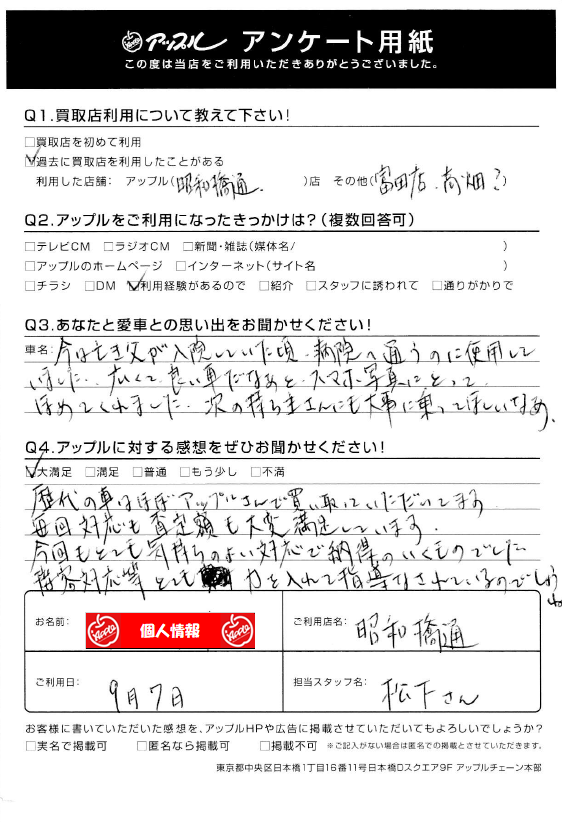 歴代の車はほぼアップルさんで買い取っていただいてます。