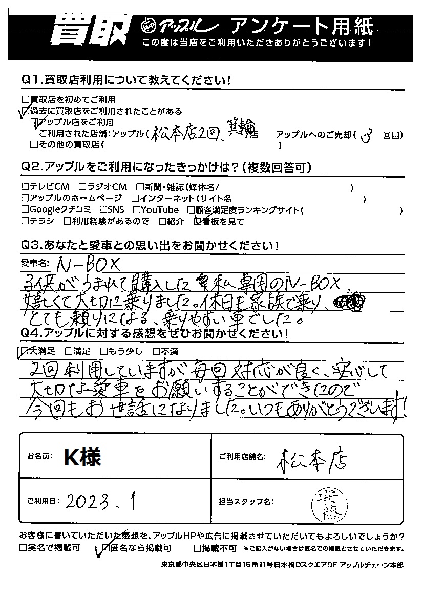 A:子供がうまれて購入した私専用のN-BOX。嬉しくて大切に