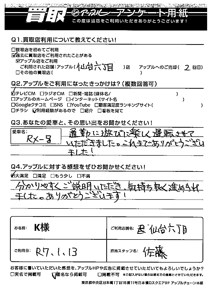 通勤に遊びに楽しく運転させていただきました。これまでありがとうございました!