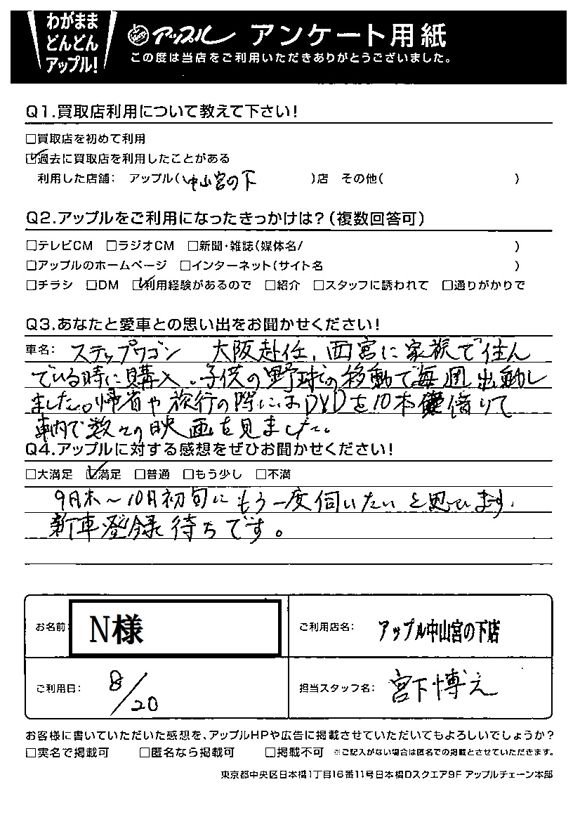 お車のご相談・ 査定だけでもOK! カンタン 入力 30秒 アップルがブランド買取始めました! お電話でも受付中! 受付時間10:00 ~ 19:00(最終受付は18:30となります) 045-929-2211 お車のご相談・ 査定だけでもOK! カンタン 入力 30秒 アップルがブランド買取始めました! お電話でも受付中! 受付時間10:00 ~ 19:00(最終受付は18:30となります) 045-929-2211 アップルがブランド買取始めました! お電話でも受付中! 受付時間10:00 ~ 19:00(最終受付は18:30となります) 045-929-2211 店舗情報 在庫車 スタッフ紹介 ブログ お客様の声 キャンペーン お得 無料査定 click お客様の声 ご記入日: 2021/08/20 横浜市 N様 車名:ホンダ ステップワゴン N様ご連絡ありがとうございます。納車が近付いて来ましたので色々と相談させていただきたいと思っております。ご相談お待ちしております。 前へ 次へ お客様の声一覧を見る