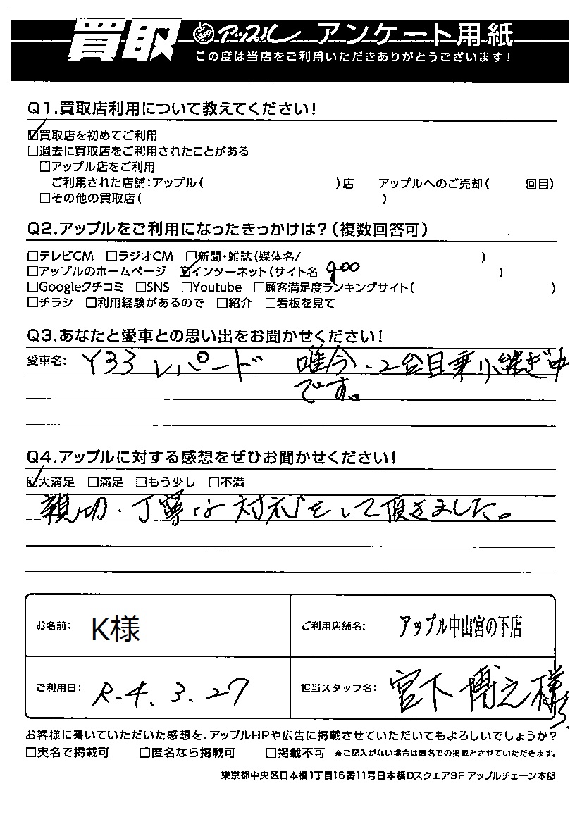 K様お乗り換え頂きありがとうございました。