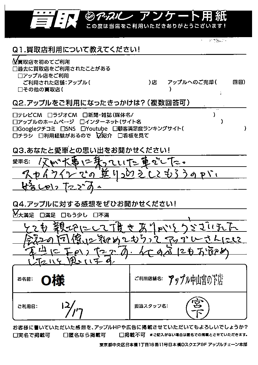 ご利用日:2022年12月17日 担当:宮下
