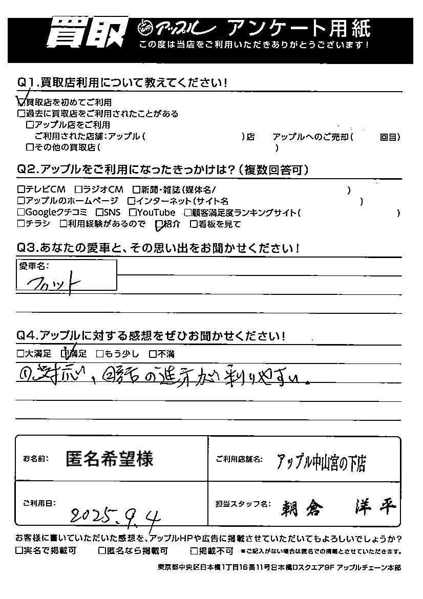 ご利用日:2025/09/04 匿名希望 様