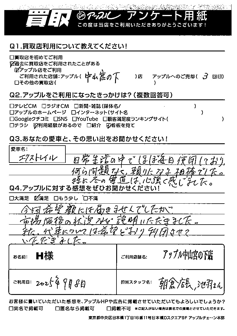 ご利用日:2025/09/08 H 様