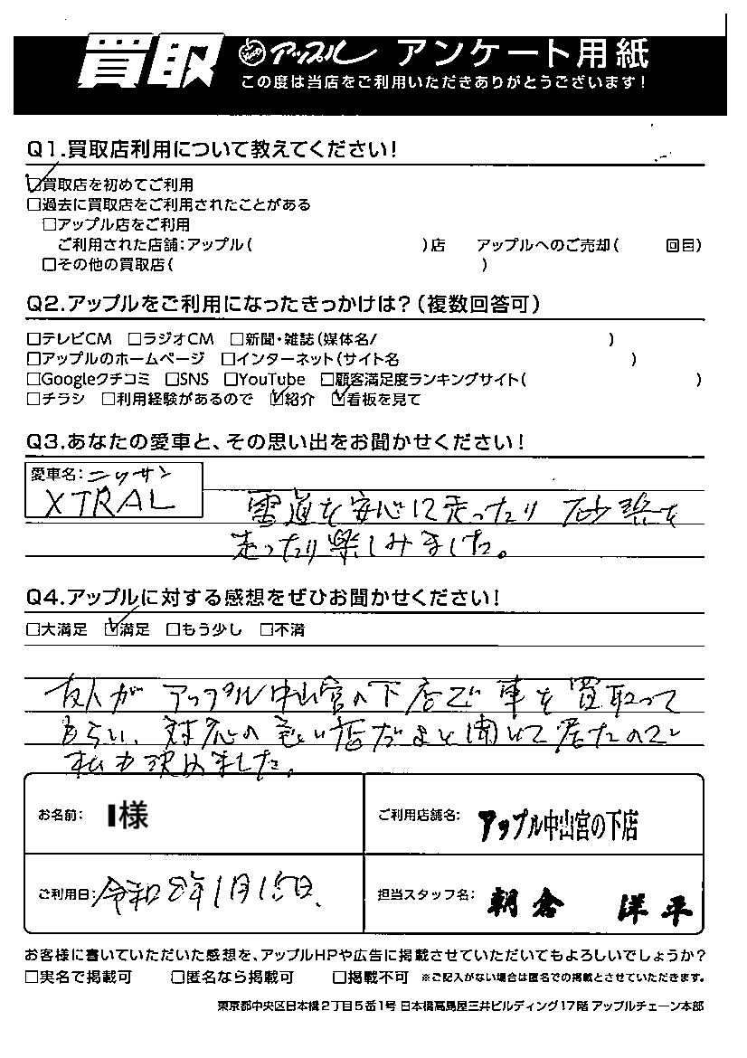 I様 車名:日産 エクストレイル
