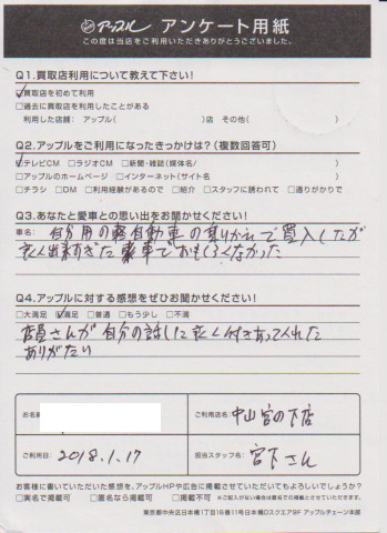 お車のご相談・ 査定だけでもOK! カンタン 入力 30秒 アップルがブランド買取始めました! お電話でも受付中! 受付時間10:00 ~ 19:00(最終受付は18:30となります) 045-929-2211 お車のご相談・ 査定だけでもOK! カンタン 入力 30秒 アップルがブランド買取始めました! お電話でも受付中! 受付時間10:00 ~ 19:00(最終受付は18:30となります) 045-929-2211 アップルがブランド買取始めました! お電話でも受付中! 受付時間10:00 ~ 19:00(最終受付は18:30となります) 045-929-2211 店舗情報 在庫車 スタッフ紹介 ブログ お客様の声 キャンペーン お得 無料査定 click お客様の声 ご記入日: 2018/01/17 S様 店員さんが自分の話に良く付き合ってくれた。ありがたい。 前へ 次へ お客様の声一覧を見る