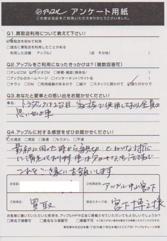 お車のご相談・ 査定だけでもOK! カンタン 入力 30秒 アップルがブランド買取始めました! お電話でも受付中! 受付時間10:00 ~ 19:00(最終受付は18:30となります) 045-929-2211 お車のご相談・ 査定だけでもOK! カンタン 入力 30秒 アップルがブランド買取始めました! お電話でも受付中! 受付時間10:00 ~ 19:00(最終受付は18:30となります) 045-929-2211 アップルがブランド買取始めました! お電話でも受付中! 受付時間10:00 ~ 19:00(最終受付は18:30となります) 045-929-2211 店舗情報 在庫車 スタッフ紹介 ブログ お客様の声 キャンペーン お得 無料査定 click お客様の声 ご記入日: 2018/02/28 F様 最初に伺った時から親切ていねいな対応に満足しております。車は欠かせない生活ですので、これをご縁にお願いします。 前へ 次へ お客様の声一覧を見る