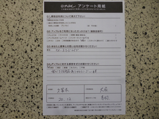 お車のご相談・ 査定だけでもOK! カンタン 入力 30秒 アップルがブランド買取始めました! お電話でも受付中! 受付時間10:00 ~ 19:00 0562-44-3661 お車のご相談・ 査定だけでもOK! カンタン 入力 30秒 アップルがブランド買取始めました! お電話でも受付中! 受付時間10:00 ~ 19:00 0562-44-3661 アップルがブランド買取始めました! お電話でも受付中! 受付時間10:00 ~ 19:00 0562-44-3661 店舗情報 在庫車 スタッフ紹介 ブログ お客様の声 キャンペーン 無料査定 click お客様の声 ご記入日: 2020/12/05 愛知県刈谷市 久冨木様 車名:マツダ CX-5 安心できる対応ありがとうございます。 前へ 次へ お客様の声一覧を見る