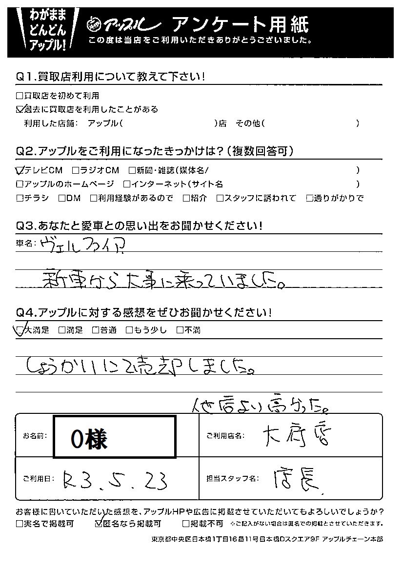 お車のご相談・ 査定だけでもOK! カンタン 入力 30秒 アップルがブランド買取始めました! お電話でも受付中! 受付時間10:00 ~ 19:00 0562-44-3661 お車のご相談・ 査定だけでもOK! カンタン 入力 30秒 アップルがブランド買取始めました! お電話でも受付中! 受付時間10:00 ~ 19:00 0562-44-3661 アップルがブランド買取始めました! お電話でも受付中! 受付時間10:00 ~ 19:00 0562-44-3661 店舗情報 在庫車 スタッフ紹介 ブログ お客様の声 キャンペーン 無料査定 click お客様の声 ご記入日: 2021/05/23 O様 車名:トヨタ ヴェルファイア(H27年1月~のHYBRID含む) 前へ 次へ お客様の声一覧を見る