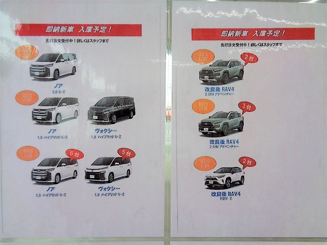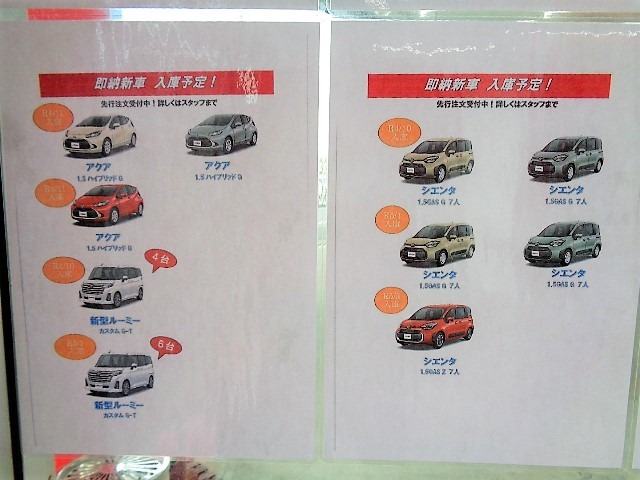 店舗内にて入庫予定と車種の張り出しを行っております♪