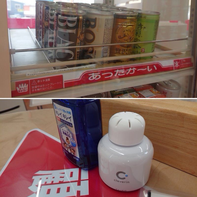 ホットのドリンク、インフルエンザ対策のクレベリンも設置しております!