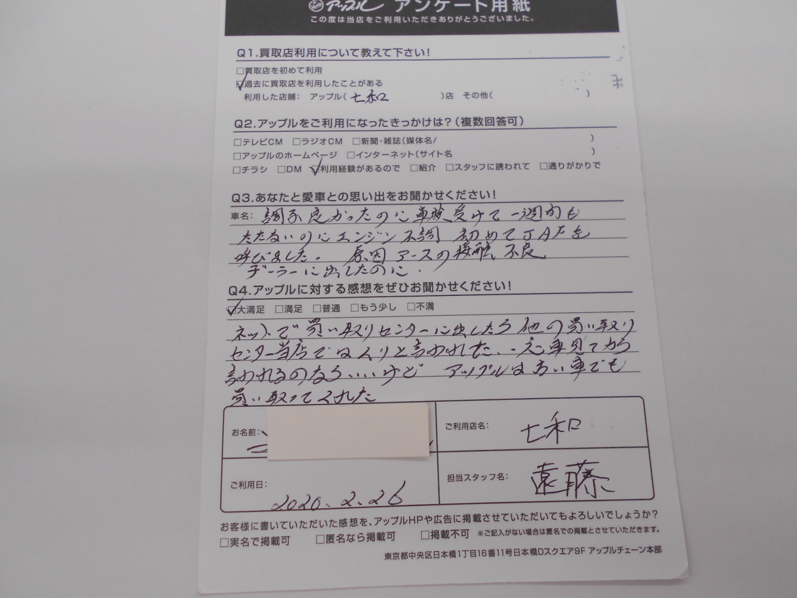 お車のご相談・ 査定だけでもOK! カンタン 入力 30秒 アップルがブランド買取始めました! お電話でも受付中! 受付時間10:00 ~ 19:00 0594-33-2200 お車のご相談・ 査定だけでもOK! カンタン 入力 30秒 アップルがブランド買取始めました! お電話でも受付中! 受付時間10:00 ~ 19:00 0594-33-2200 アップルがブランド買取始めました! お電話でも受付中! 受付時間10:00 ~ 19:00 0594-33-2200 店舗情報 在庫車 スタッフ紹介 ブログ お客様の声 キャンペーン 無料査定 click お客様の声 ご記入日: 2020/02/26 匿名希望シエンタ様 ネットで買取センターに出したら他の買取センター当店では無理と言われてた。一応車見てから言われるのならいいけど、アップルは安い車でも買い取ってくれた。 前へ 次へ お客様の声一覧を見る