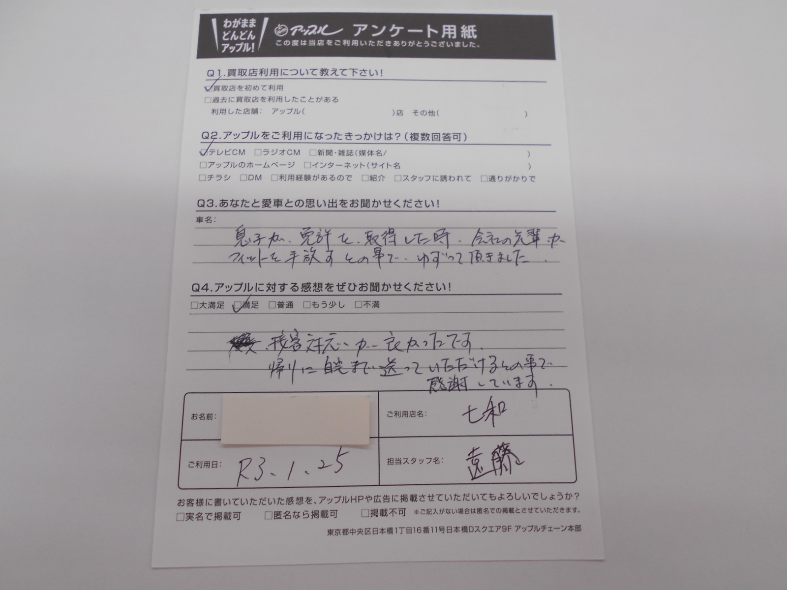 お車のご相談・ 査定だけでもOK! カンタン 入力 30秒 アップルがブランド買取始めました! お電話でも受付中! 受付時間10:00 ~ 19:00 0594-33-2200 お車のご相談・ 査定だけでもOK! カンタン 入力 30秒 アップルがブランド買取始めました! お電話でも受付中! 受付時間10:00 ~ 19:00 0594-33-2200 アップルがブランド買取始めました! お電話でも受付中! 受付時間10:00 ~ 19:00 0594-33-2200 店舗情報 在庫車 スタッフ紹介 ブログ お客様の声 キャンペーン 無料査定 click お客様の声 ご記入日: 2021/01/25 匿名希望フィット様 接客対応が良かったです。帰りに自宅まで送っていただけるとの事で感謝しています。 前へ 次へ お客様の声一覧を見る