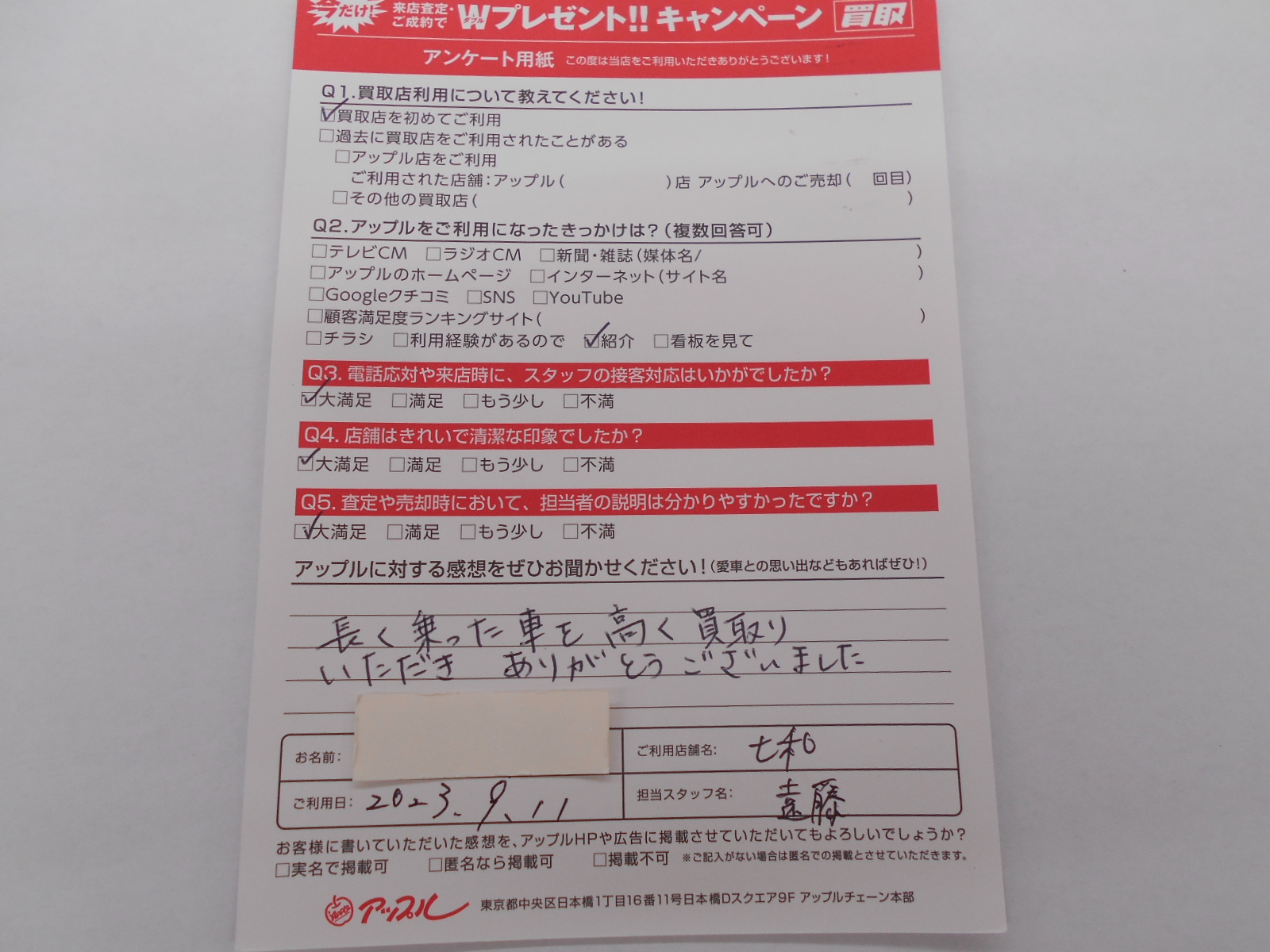 お車のご相談・ 査定だけでもOK! カンタン 入力 30秒 アップルがブランド買取始めました! お電話でも受付中! 受付時間10:00 ~ 19:00 0594-33-2200 お車のご相談・ 査定だけでもOK! カンタン 入力 30秒 アップルがブランド買取始めました! お電話でも受付中! 受付時間10:00 ~ 19:00 0594-33-2200 アップルがブランド買取始めました! お電話でも受付中! 受付時間10:00 ~ 19:00 0594-33-2200 店舗情報 在庫車 スタッフ紹介 ブログ お客様の声 キャンペーン 無料査定 click お客様の声 ご記入日: 2023/09/11 匿名様 車名:三菱 パジェロ 長く乗った車を高く買取りいただきありがとうございました 前へ 次へ お客様の声一覧を見る