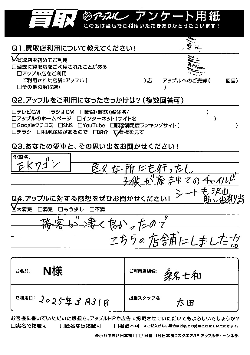 A.愛車名:EKワゴン 色々な所にも行ったし、子供が産まれてのチャイルドシートも沢山思い出あり