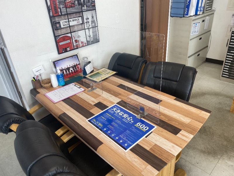 商談テーブルにもアルコール除菌シートを各テーブルに置いております✨