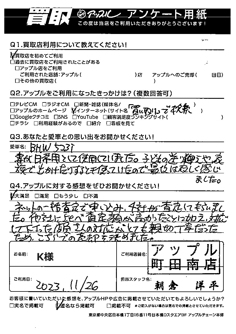 ご利用日:2023年11月26日 担当:朝倉 洋平