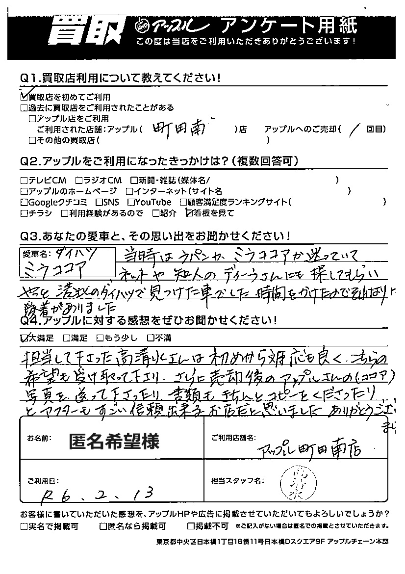 希望も受け取って下さり、さらに売却後のアップルさんの(ココア)