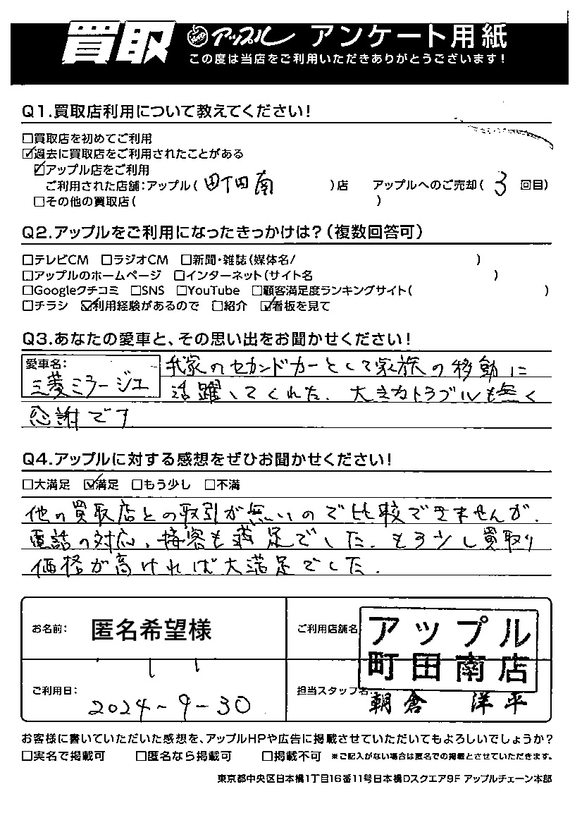 ご利用日:2024/09/30 匿名希望様