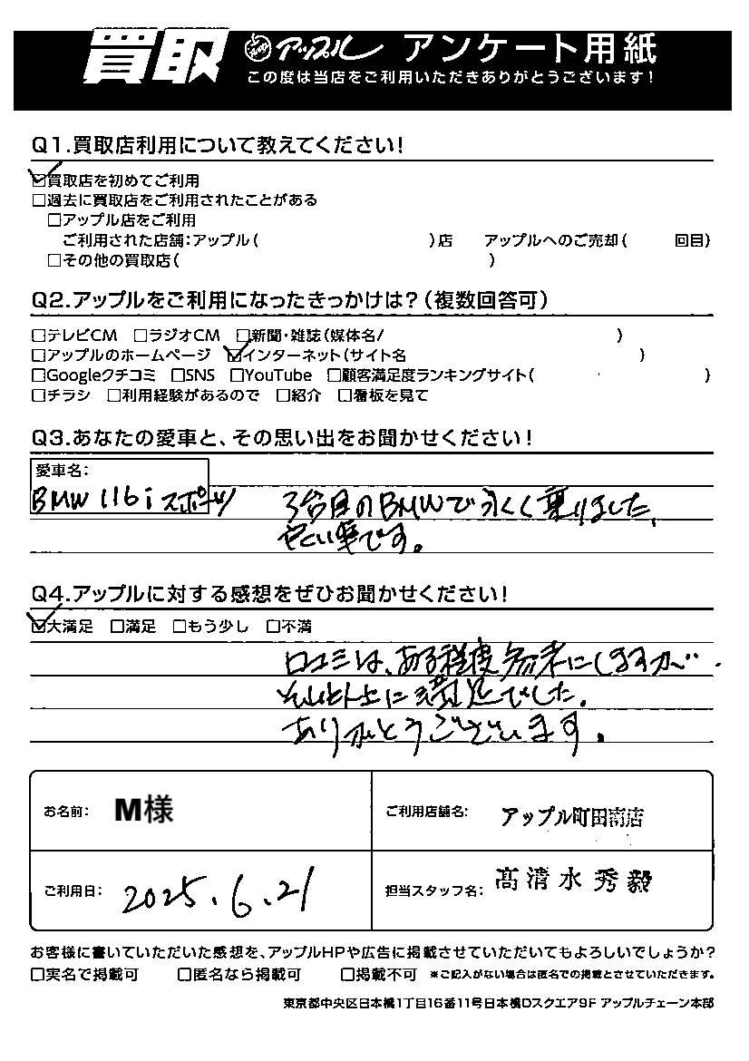 ご利用日:2025/06/21 M 様