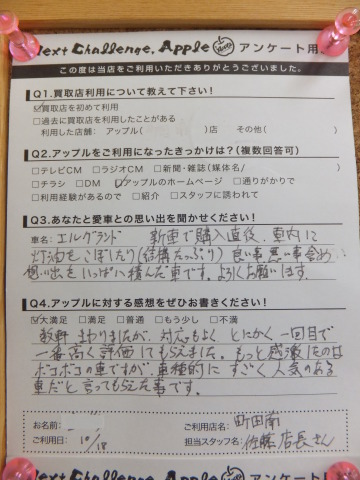 お車のご相談・ 査定だけでもOK! カンタン 入力 30秒 アップルがブランド買取始めました! お電話でも受付中! 受付時間10:00 ~19:00 042-788-4511 お車のご相談・ 査定だけでもOK! カンタン 入力 30秒 アップルがブランド買取始めました! お電話でも受付中! 受付時間10:00 ~19:00 042-788-4511 アップルがブランド買取始めました! お電話でも受付中! 受付時間10:00 ~19:00 042-788-4511 店舗情報 在庫車 スタッフ紹介 ブログ お客様の声 キャンペーン お得 無料査定 click お客様の声 ご記入日: 2015/10/18 N・S様 数件まわりましたが対応も良く、とにかく1回目で一番高く評価してもらえました。もっと感激したのはボコボコの車でしたが車種的にすごく人気のある車だと言ってもらえた事です。 前へ 次へ お客様の声一覧を見る