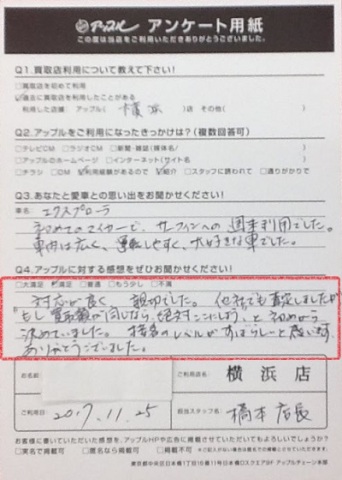 対応が良く親切でした。他社でも査定しましたが、“もし買取額が同じなら絶対ここにしよう”と初めから決めていました。接客のレベルが素晴らしいと感じます。ありがとうございました。