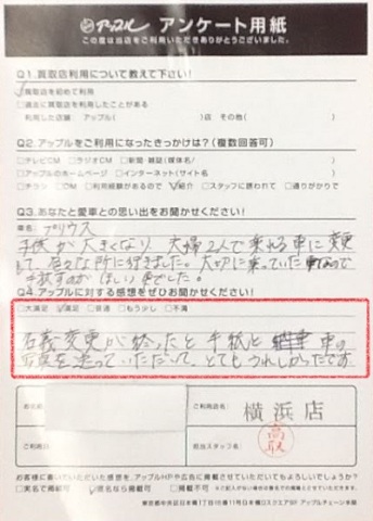 名義変更が終わったと、手紙と車の写真を送っていただいてとてもうれしかったです。