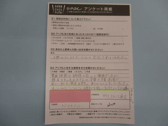 買取価格は納得の寂しい価格だったが、担当スタッフ山口さんの姿勢や言葉、表情で寂しい中にも満足出来た。