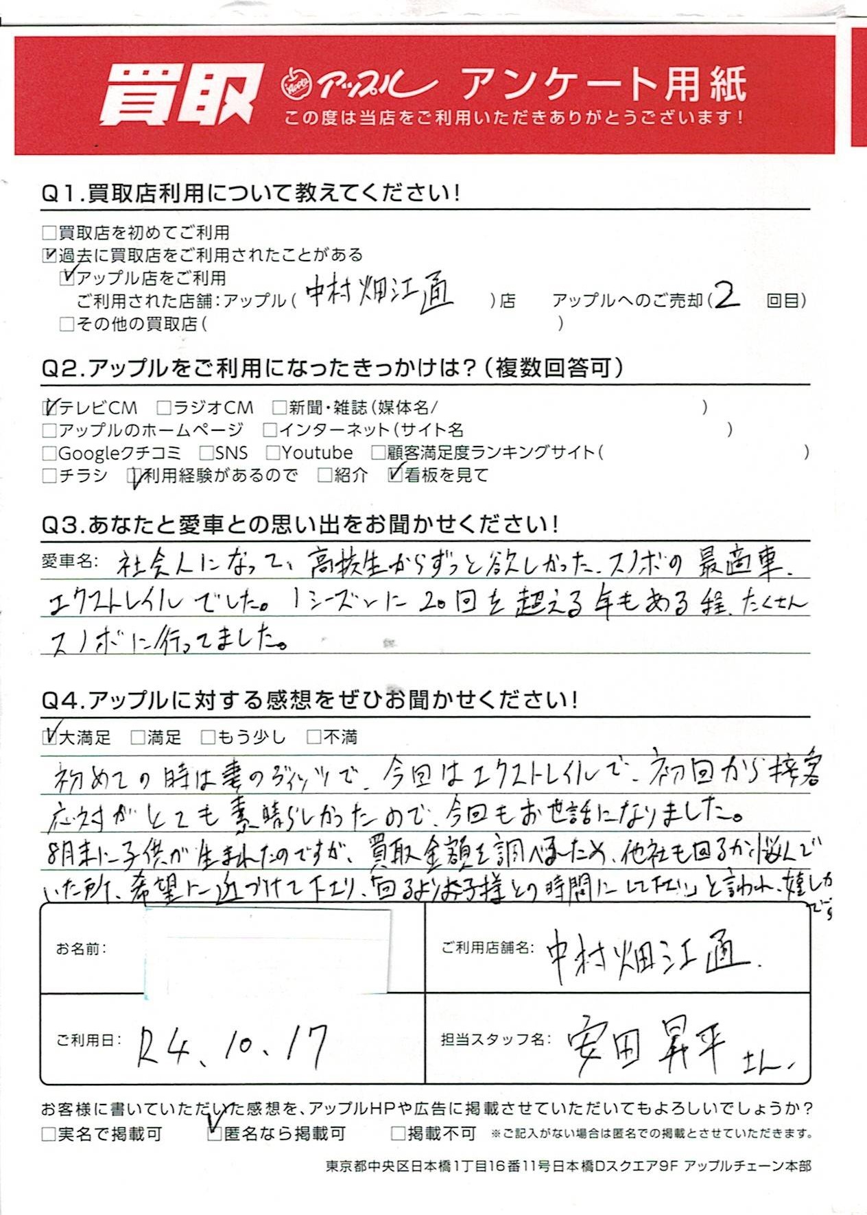 名古屋市 M様(男性)様 車名:日産 エクストレイル