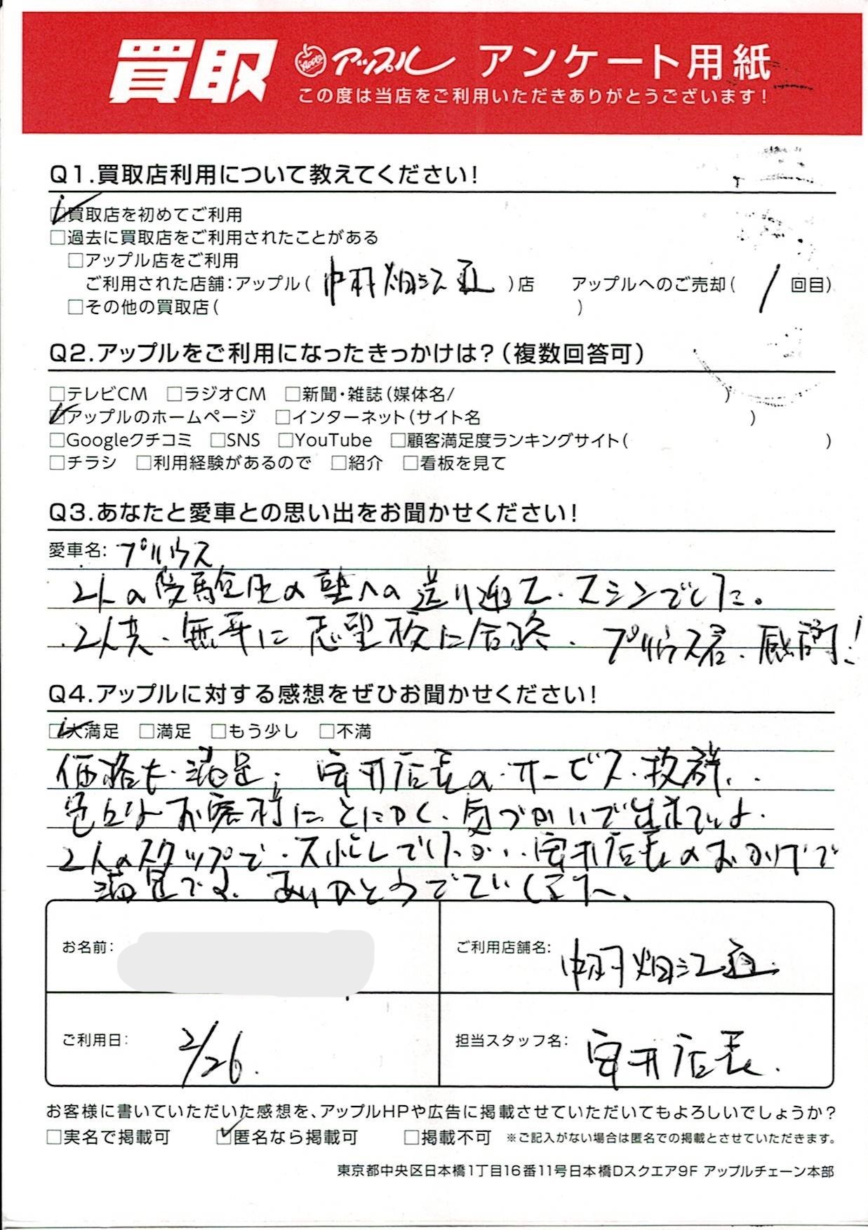 名古屋市 S様(男性)様 車名:トヨタ プリウス(2023年3月~のPHVを含む)