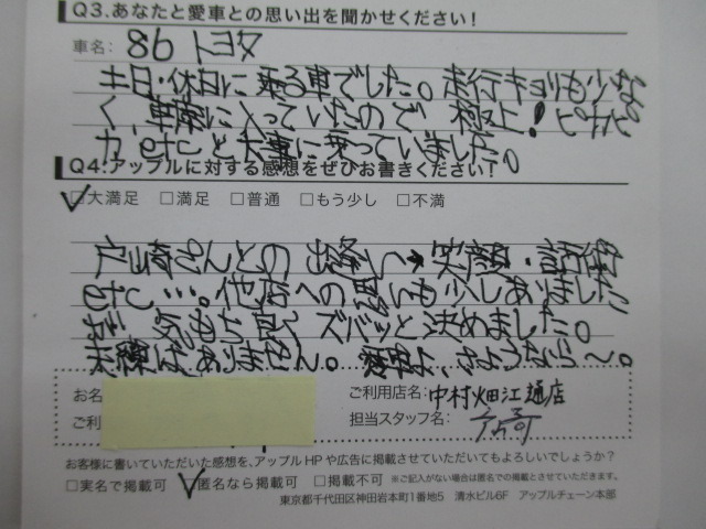 お車のご相談・ 査定だけでもOK! カンタン 入力 30秒 アップルがブランド買取始めました! お電話でも受付中! 受付時間10:00 ~ 19:00 052-483-1181 お車のご相談・ 査定だけでもOK! カンタン 入力 30秒 アップルがブランド買取始めました! お電話でも受付中! 受付時間10:00 ~ 19:00 052-483-1181 アップルがブランド買取始めました! お電話でも受付中! 受付時間10:00 ~ 19:00 052-483-1181 店舗情報 在庫車 スタッフ紹介 ブログ お客様の声 キャンペーン 無料査定 click お客様の声 ご記入日: 2015/07/27 匿名様 戸崎さんとの出会い、笑顔・話術・etc・・・。他店への思いも少しありましたが、気持ちよくズバッと決めました。未練はありません。愛車よ、さようなら~。 前へ 次へ お客様の声一覧を見る