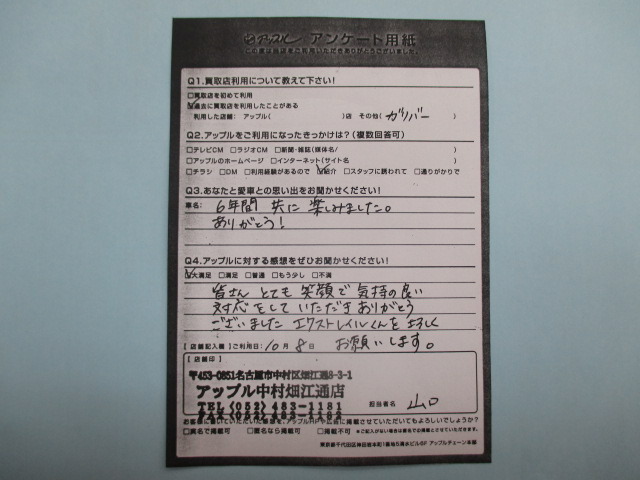 お車のご相談・ 査定だけでもOK! カンタン 入力 30秒 アップルがブランド買取始めました! お電話でも受付中! 受付時間10:00 ~ 19:00 052-483-1181 お車のご相談・ 査定だけでもOK! カンタン 入力 30秒 アップルがブランド買取始めました! お電話でも受付中! 受付時間10:00 ~ 19:00 052-483-1181 アップルがブランド買取始めました! お電話でも受付中! 受付時間10:00 ~ 19:00 052-483-1181 店舗情報 在庫車 スタッフ紹介 ブログ お客様の声 キャンペーン 無料査定 click お客様の声 ご記入日: 2016/10/08 匿名様 皆さんとても笑顔で気持ちの良い対応をしていただきありがとうございました。エクストレイルくんをよろしくお願いします。 前へ 次へ お客様の声一覧を見る
