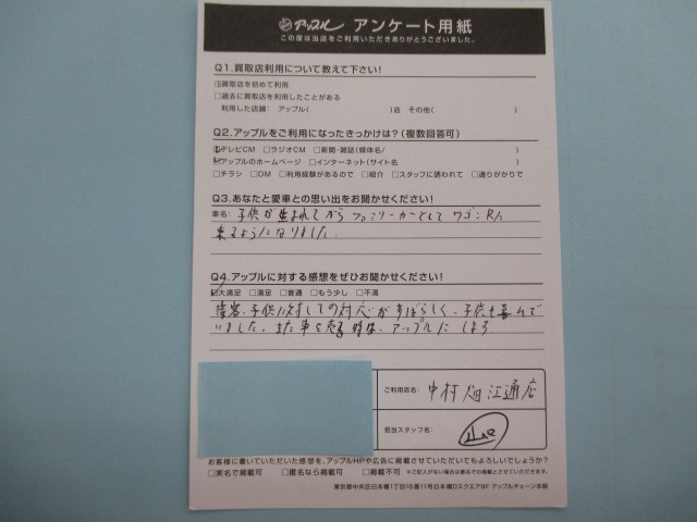 お車のご相談・ 査定だけでもOK! カンタン 入力 30秒 アップルがブランド買取始めました! お電話でも受付中! 受付時間10:00 ~ 19:00 052-483-1181 お車のご相談・ 査定だけでもOK! カンタン 入力 30秒 アップルがブランド買取始めました! お電話でも受付中! 受付時間10:00 ~ 19:00 052-483-1181 アップルがブランド買取始めました! お電話でも受付中! 受付時間10:00 ~ 19:00 052-483-1181 店舗情報 在庫車 スタッフ紹介 ブログ お客様の声 キャンペーン 無料査定 click お客様の声 ご記入日: 2017/09/02 W(男性)様 接客、子供に対しての対応がすばらしく、子供も喜んでいました。また車を売るときは、アップルにします。 前へ 次へ お客様の声一覧を見る