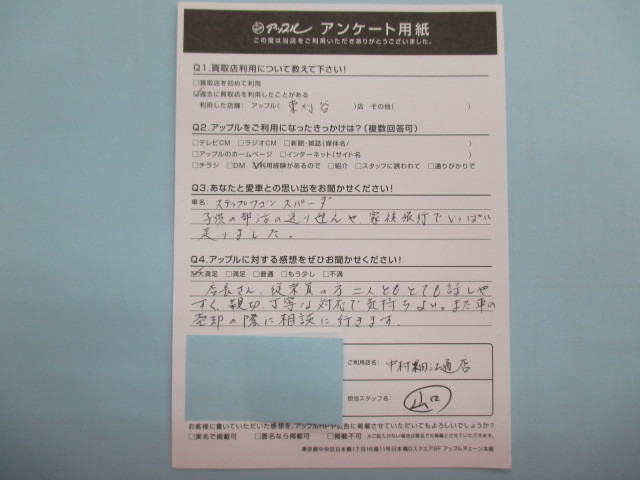 お車のご相談・ 査定だけでもOK! カンタン 入力 30秒 アップルがブランド買取始めました! お電話でも受付中! 受付時間10:00 ~ 19:00 052-483-1181 お車のご相談・ 査定だけでもOK! カンタン 入力 30秒 アップルがブランド買取始めました! お電話でも受付中! 受付時間10:00 ~ 19:00 052-483-1181 アップルがブランド買取始めました! お電話でも受付中! 受付時間10:00 ~ 19:00 052-483-1181 店舗情報 在庫車 スタッフ紹介 ブログ お客様の声 キャンペーン 無料査定 click お客様の声 ご記入日: 2017/11/18 S(男性)様 店長さん、従業員の方二人ともとても話しやすく、親切・丁寧な対応で気持ちよい。また売却の際に相談に行きます。 前へ 次へ お客様の声一覧を見る