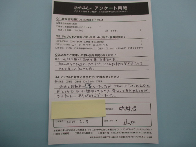 お車のご相談・ 査定だけでもOK! カンタン 入力 30秒 アップルがブランド買取始めました! お電話でも受付中! 受付時間10:00 ~ 19:00 052-483-1181 お車のご相談・ 査定だけでもOK! カンタン 入力 30秒 アップルがブランド買取始めました! お電話でも受付中! 受付時間10:00 ~ 19:00 052-483-1181 アップルがブランド買取始めました! お電話でも受付中! 受付時間10:00 ~ 19:00 052-483-1181 店舗情報 在庫車 スタッフ紹介 ブログ お客様の声 キャンペーン 無料査定 click お客様の声 ご記入日: 2019/02/07 I(女性)様 初めて自動車の売買をしましたが、対応して下さった山口さんがとてもていねいに説明して下さり、安心してまかせることができました。ありがとうございました。 前へ 次へ お客様の声一覧を見る