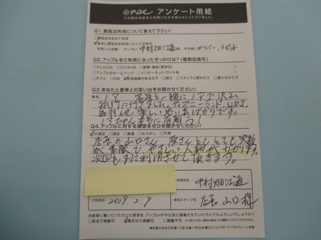 お車のご相談・ 査定だけでもOK! カンタン 入力 30秒 アップルがブランド買取始めました! お電話でも受付中! 受付時間10:00 ~ 19:00 052-483-1181 お車のご相談・ 査定だけでもOK! カンタン 入力 30秒 アップルがブランド買取始めました! お電話でも受付中! 受付時間10:00 ~ 19:00 052-483-1181 アップルがブランド買取始めました! お電話でも受付中! 受付時間10:00 ~ 19:00 052-483-1181 店舗情報 在庫車 スタッフ紹介 ブログ お客様の声 キャンペーン 無料査定 click お客様の声 ご記入日: 2019/02/09 S(男性)様 店長の山口さん、原さんともとても笑顔が素敵でやさしい人柄がわかります。次回もまた利用させて頂きます。 前へ 次へ お客様の声一覧を見る