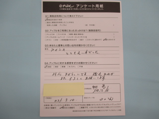 お車のご相談・ 査定だけでもOK! カンタン 入力 30秒 アップルがブランド買取始めました! お電話でも受付中! 受付時間10:00 ~ 19:00 052-483-1181 お車のご相談・ 査定だけでもOK! カンタン 入力 30秒 アップルがブランド買取始めました! お電話でも受付中! 受付時間10:00 ~ 19:00 052-483-1181 アップルがブランド買取始めました! お電話でも受付中! 受付時間10:00 ~ 19:00 052-483-1181 店舗情報 在庫車 スタッフ紹介 ブログ お客様の声 キャンペーン 無料査定 click お客様の声 ご記入日: 2019/03/10 K(男性)様 車名:トヨタ アイシス 対応すばらしいです。機会あればまたよろしくお願いします。 前へ 次へ お客様の声一覧を見る